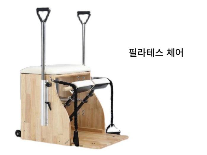 의자 형태로 구성되어 있으며 발판에 스프링 저항을 부착하여 운동을 실시하게 됩니다. 리포머처럼 앉아서, 서서, 엎드리는 등 여러 자세로 운동을 할 수 있어요. 그러나 지탱하는 바닥 면적이 적고 대부분 서서 수행하는 자세들이 많아서 어려운 필라테스 동작들이 꽤 있는 편이죠.