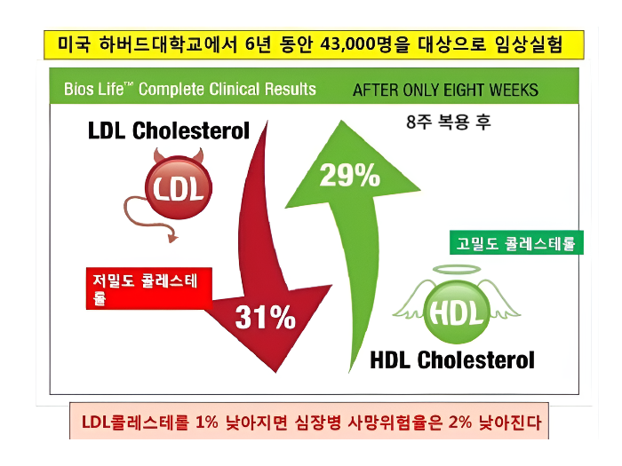 그 결과 유의미한 결과 (HDL 콜레스테롤 29% 증가, LDL 콜레스테롤 31% 감소)를 도출했다는 점....
